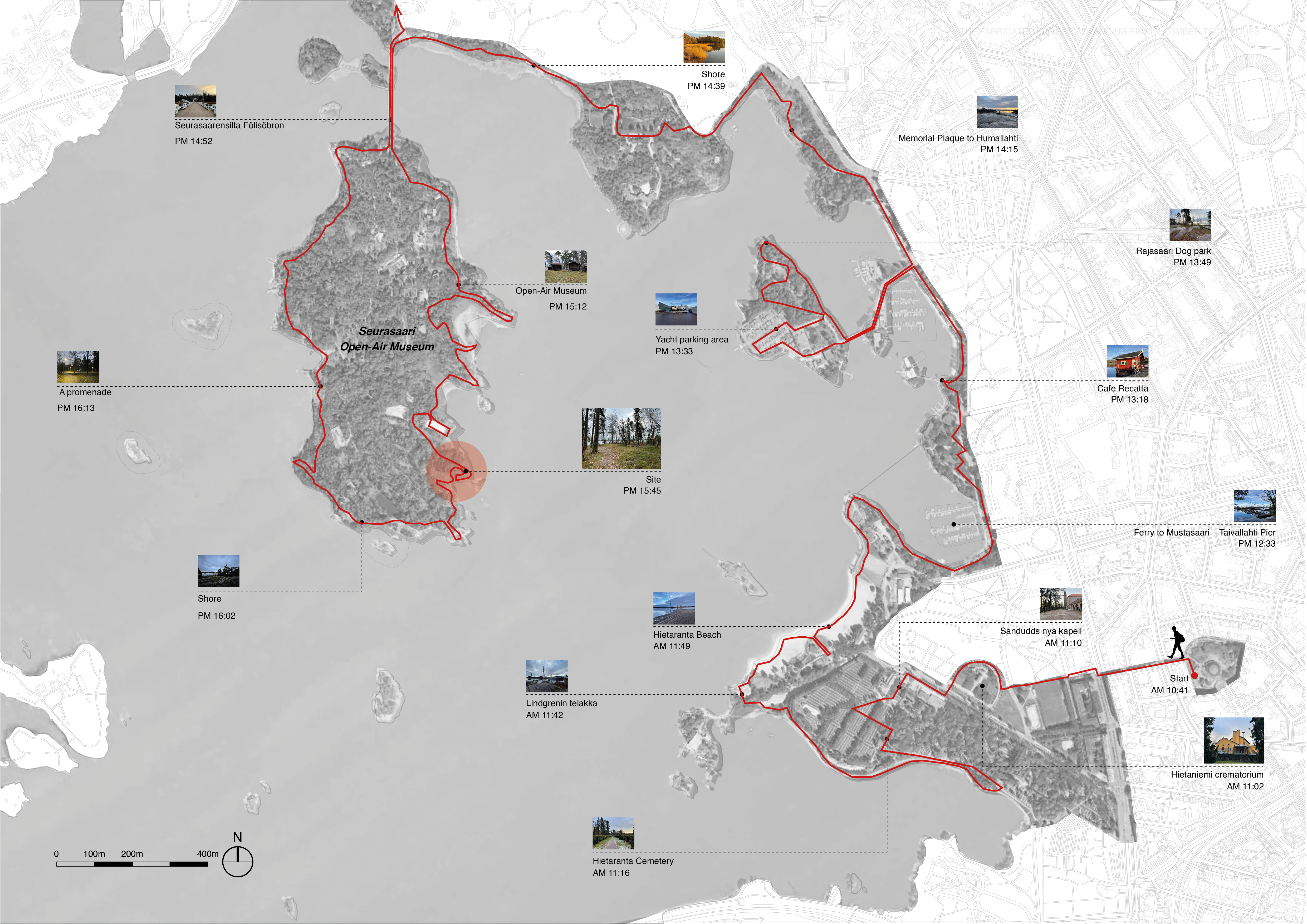 Analysing the site’s surrounding context along the Seurrasarenselka waterfront promenade was a significant act in understanding the conditions of the surrounding site. Although walking for more than six hours was arduous, it was meaningful to feel the atmosphere and periphery site conditions.