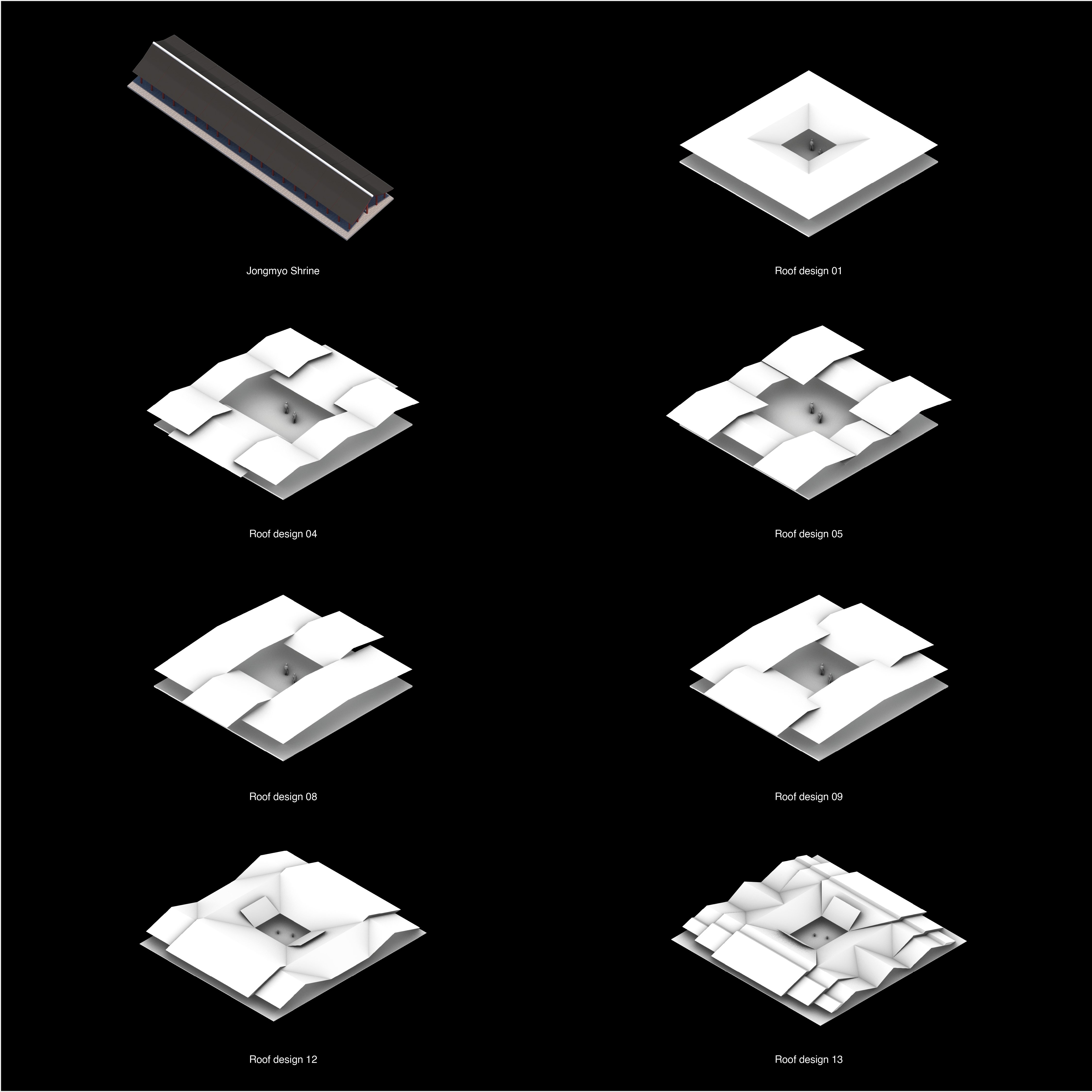 A novel roof design was developed, drawing inspiration from the roof of the Jongmyo Shrine.